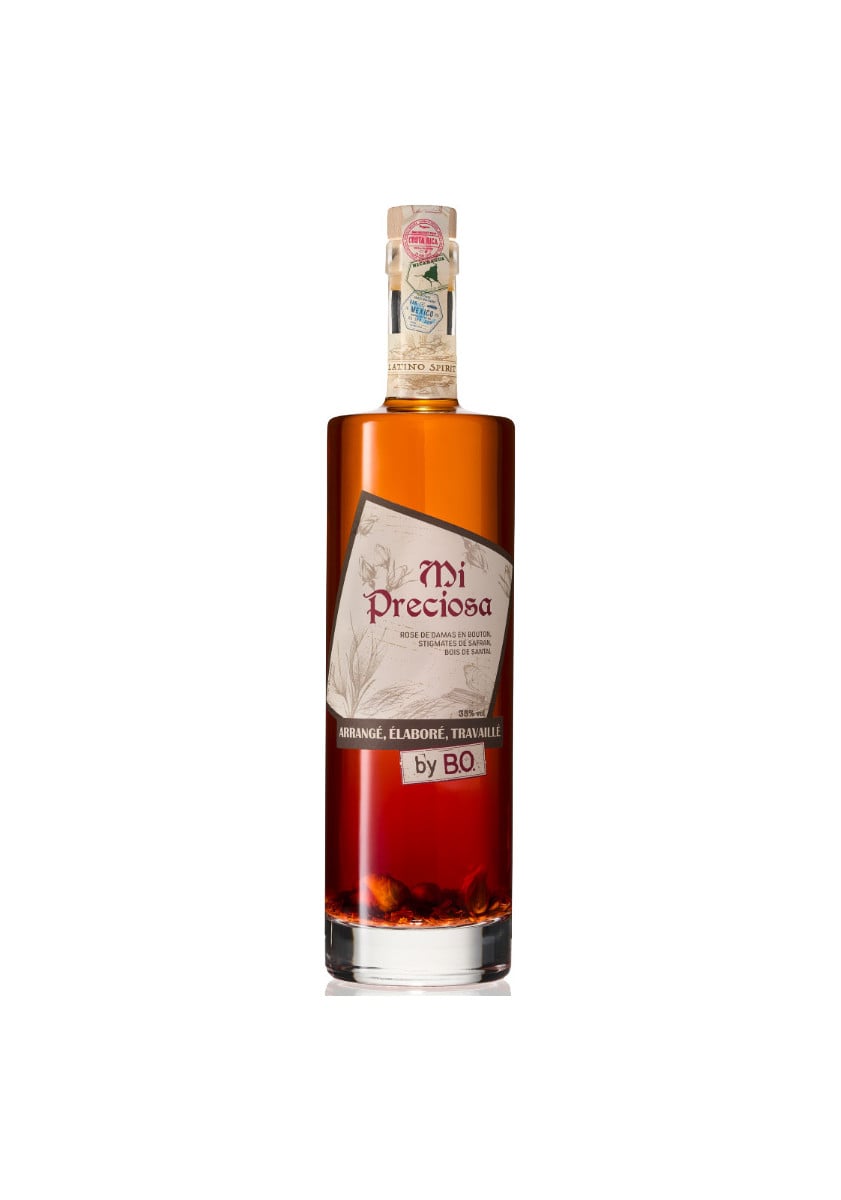 The result of BO's know-how, Mi Preciosa by BO 70cl features three exceptional ingredients: sandalwood, with woody and soothing notes, Damask rose, a symbol of delicacy and sensuality, and saffron, a precious spice that brings a warm and subtly spicy touch. These flavours, rarely combined in the world of arranged rum, are elegantly balanced to offer a refined and unique sensory experience. The 70cl format sublimates this creation by allowing you to share all the intensity and finesse of this artisanal spirit, designed for lovers of delicate aromas and authentic taste emotions.