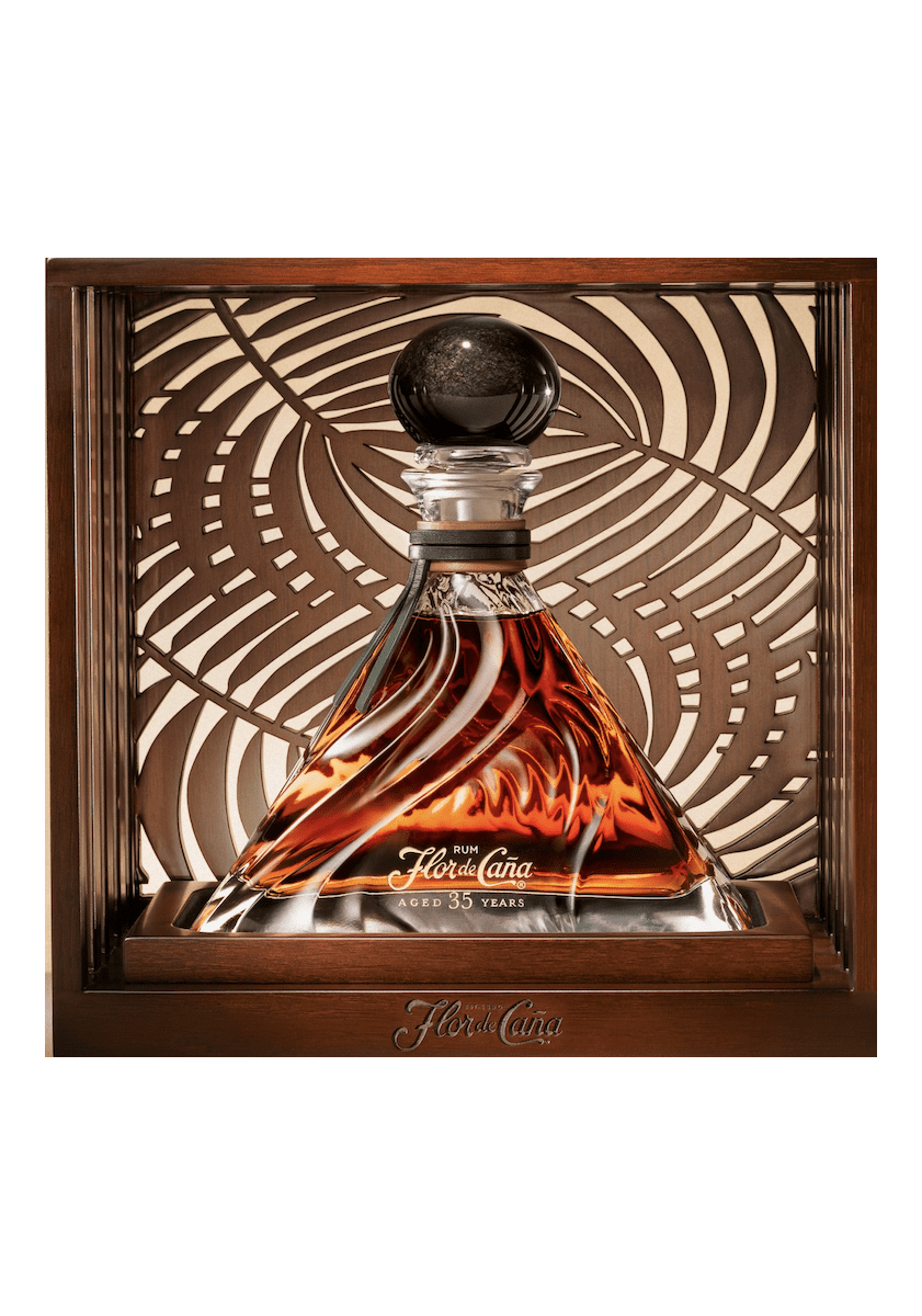 Made from cane juice grown in the rich volcanic soils of San Cristóbal, Flor de Caña – 35 Years Old was distilled in 1990 and then aged for three and a half decades in American white oak barrels. Completely natural and without additions, it is part of the family's private reserves, supervised by Maestro Ronero Tomás Cano. Produced in only 350 copies, this cuvée is presented in a crystal decanter inspired by the reliefs of the volcano, topped with an obsidian stopper and delivered in a custom-made walnut box.