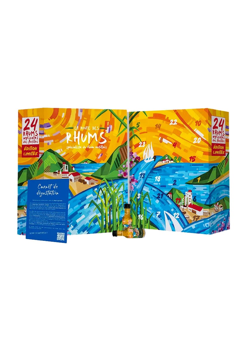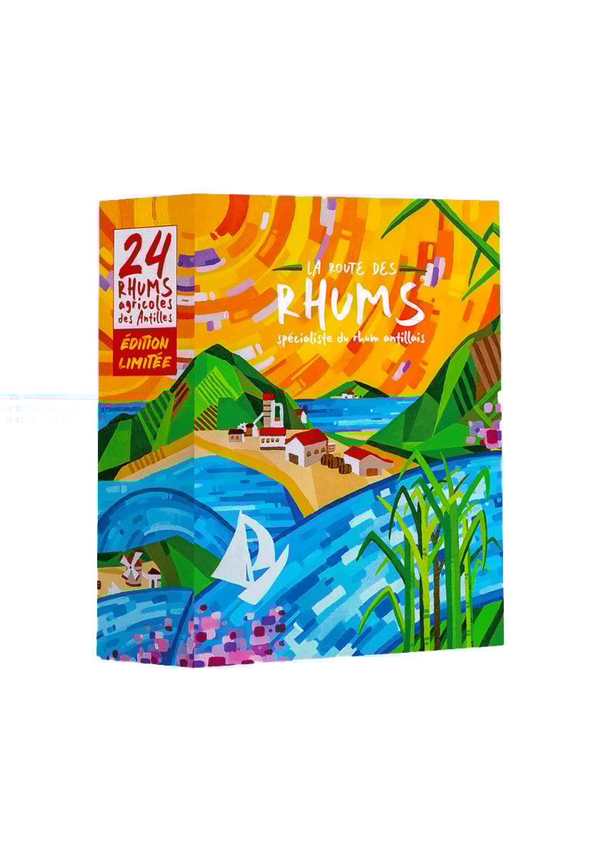 24 mini bottles of 2.5 cl 100% agricole rum from the French West Indies: exclusives, selections by cellar masters, rare vintages, and previews. Blind tastings, a tasting notebook, and videos via QR codes on each vial. A discovery box designed for enthusiasts and the curious alike, featuring white, aged, and exceptional rums.