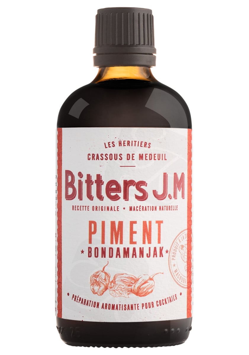 De quoi est composé ce bitter ? Il s'agit d'une macération de piments Bondamanjak , de piments végétariens, de gingembre, de curcuma, d’amande torréfiées et de poivre vert. Les piments Bondamanjak et le curcuma proviennent des jardins alentours de la Distillerie.
