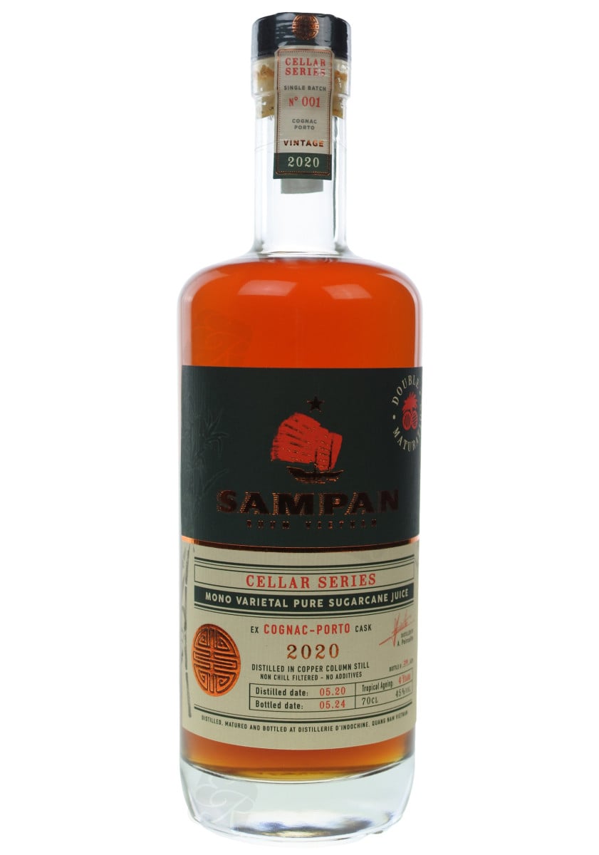 Originaire du Vietnam, le Sampan Cellar Series 2020 Cognac Porto 4 ans est le fruit d'un travail minutieux dans les chais côtiers du Quang Nam. Distillé en 2020, ce rhum pur jus de canne a bénéficié d'une maturation exceptionnelle : 36 mois en fûts de cognac, où il a acquis sa vivacité, puis un affinage en fûts de porto pour une rondeur subtile. Cette double maturation confère à ce rhum un équilibre remarquable entre le bois, les épices douces et les fruits secs. Nez : un parfum de bois épicé, avec des touches de soufre et de tamarin. Bouche : une attaque de fruits secs et d'épices, avec des notes de figue séchée. Finale : longue et persistante, avec des arômes de tabac blond et de moka.